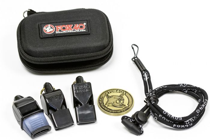 This whistle kit comes with three different Fox 40 Pealess whistles offering unique whistle tones for multi-court or multi-field situations, all bringing the famous reliable and consistent penetrating sound. Also included is a unique Fox 40 branded 'heads and tails' tossing coin made from die-cast antique brass, and breakaway lanyard made of strong non-kinking material with black hardware.